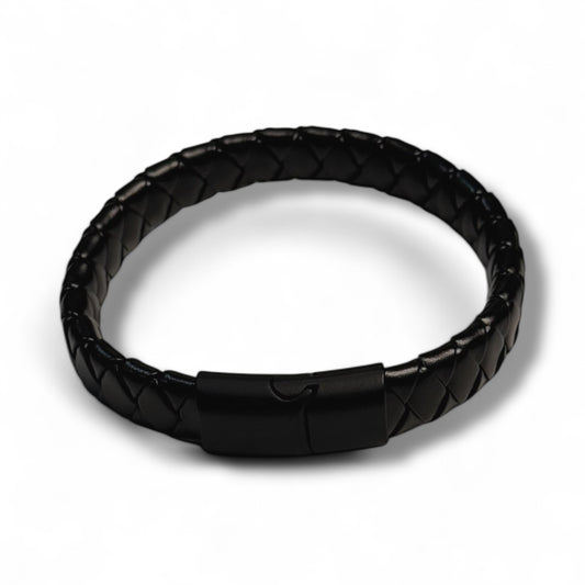 Artisan Braided Leather Bracelet with Sterling Steel Clasp