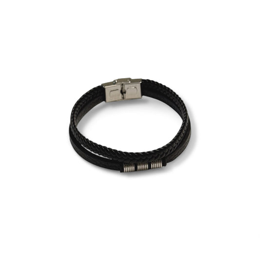 Artisan Braided Leather Bracelet with Sterling Steel Clasp