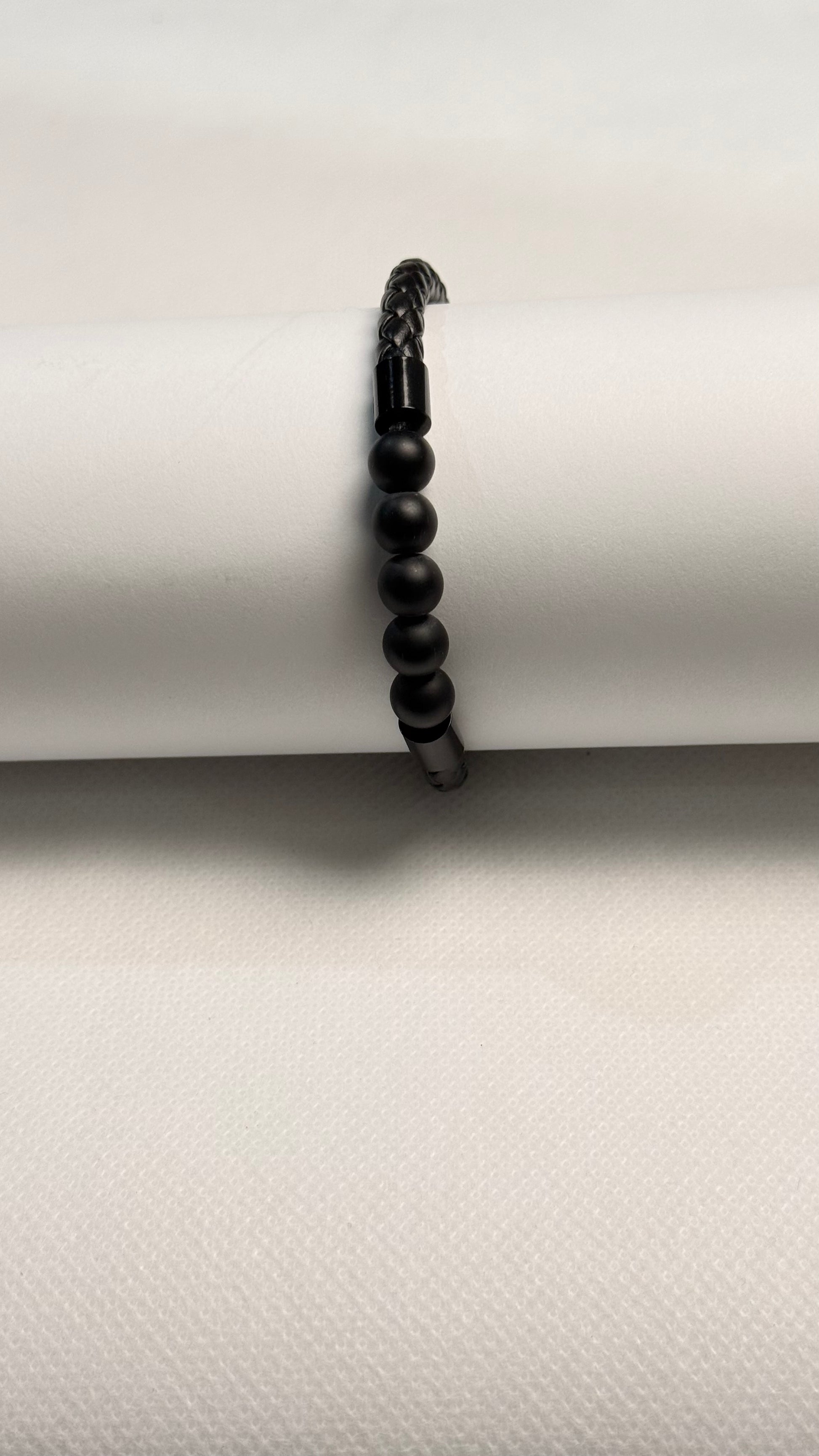• Sleek Design: Single, thick strand of braided black leather.